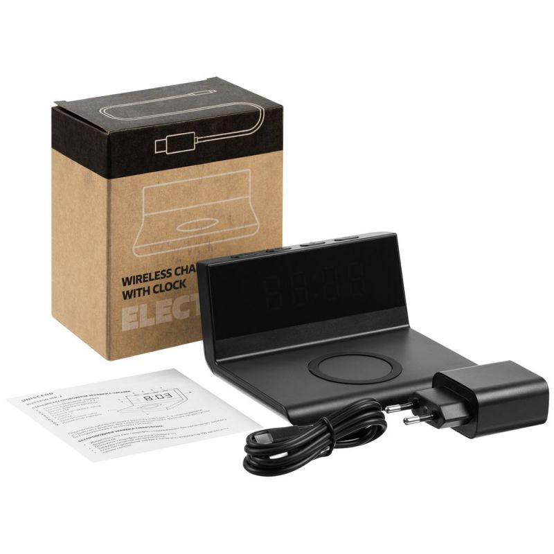 Станция беспроводной зарядки с часами Electron, ver. 2, черная