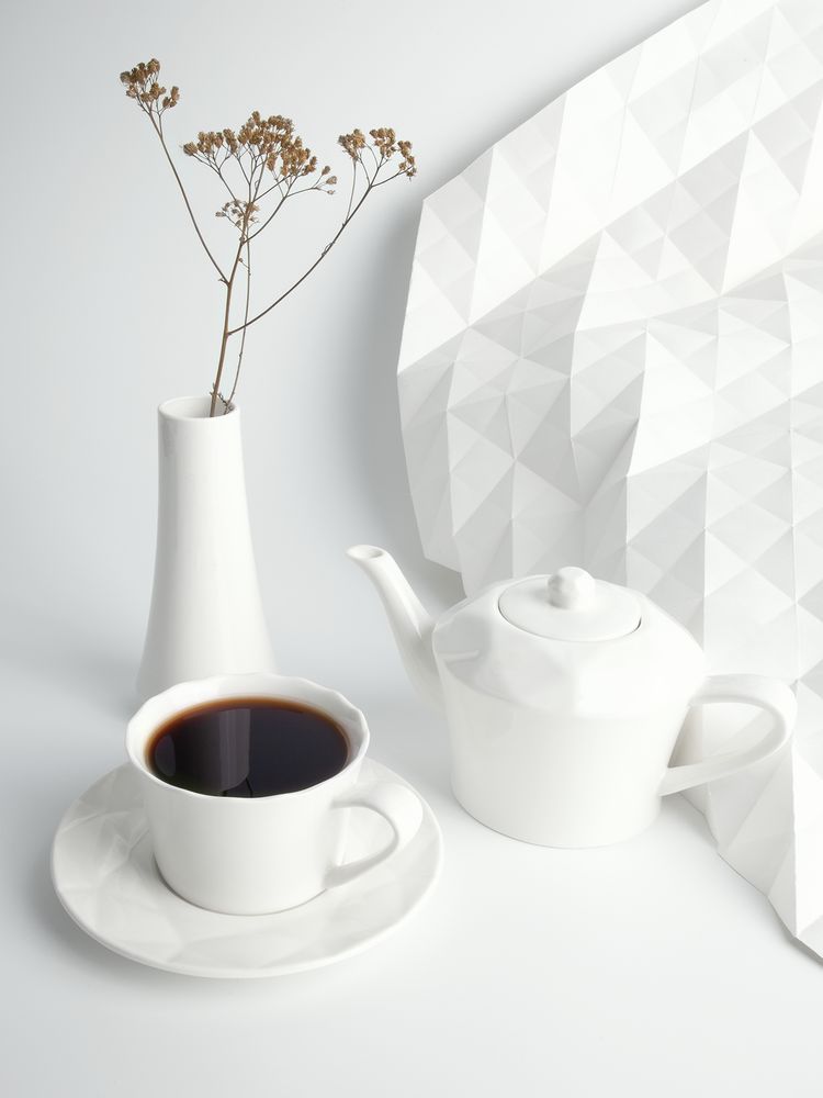 Линейка Diamante Bianco — настоящий бриллиант коллекции Altavolo. Структура и пропорции граней этой небольшой вазочки в точности повторяют верхнюю часть бриллианта классической огранки — корону. Присмотритесь — и вы увидите, как играет свет на молочно-белом фарфоре.