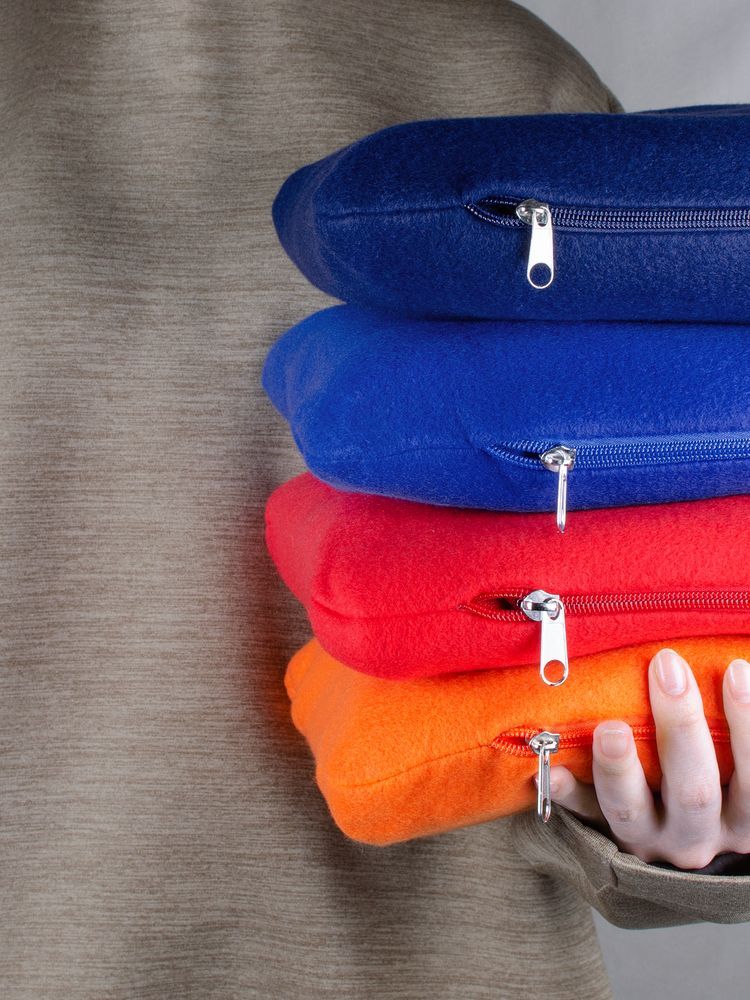 Флисовый плед с чехлом на молнии. Если сложить плед в чехол, получается подушка.