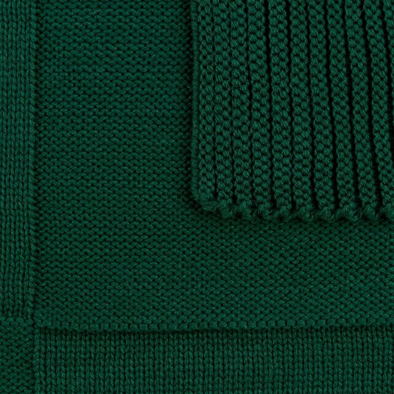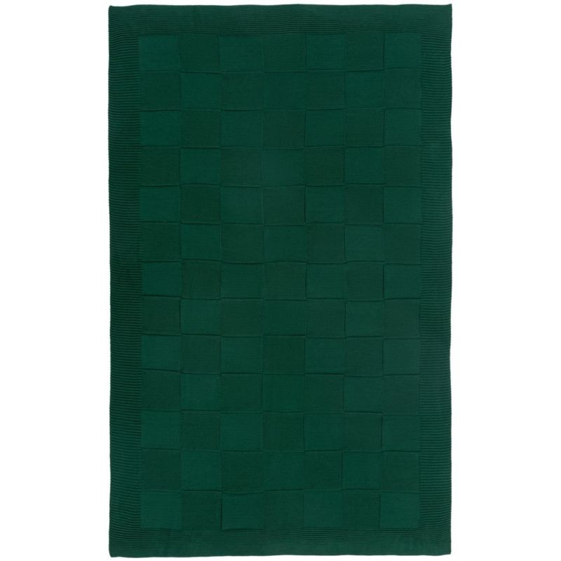 Однотонный плед рельефной вязки «в клеточку» с широким кантом, выполненным резинкой.