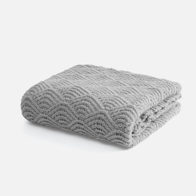 Изысканный плед с узором из закругленных ромбов станет настоящим украшением пространства. Воздушный, словно полупрозрачный, узор напоминает морские ракушки, навевая мысли о приятном курортном отдыхе и полной безмятежности.