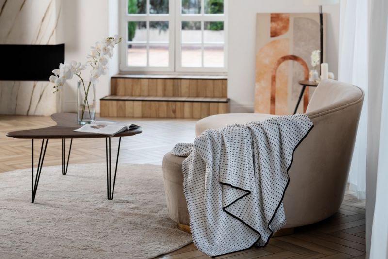Плед из мягкого акрила Fringy особенный и неповторимый. Он выигрышно выделяется необычным узором — контрастными с основным полотном стежками, дополненными элегантной и аккуратной бахромой. Словно соединив в себе искусство вязания с шитьем, плед гармонично впишется в дизайн современной гостиной или спальни.