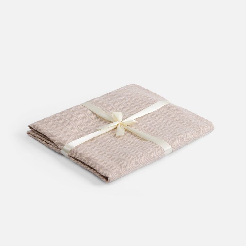 Классический рисунок «елочка» не слишком привлекает внимание, но в то же время добавляет изюминки. Смешанный состав пряжи продлевает срок службы и существенно облегчает уход за пледом.