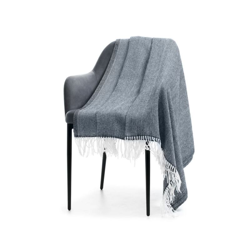 Классический рисунок «елочка» не слишком привлекает внимание, но в то же время добавляет изюминки. Смешанный состав пряжи продлевает срок службы и существенно облегчает уход за пледом.