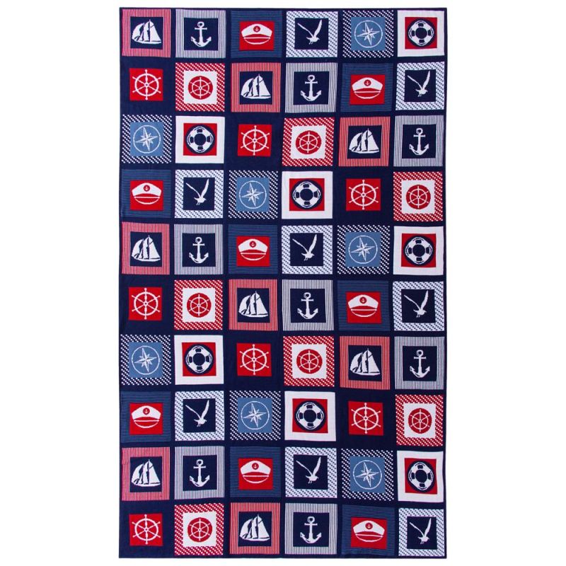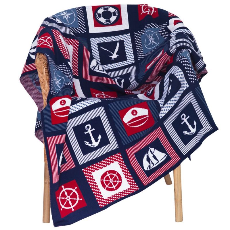 В каждой части общего рисунка жаккардового пледа изображены главные морские символы.