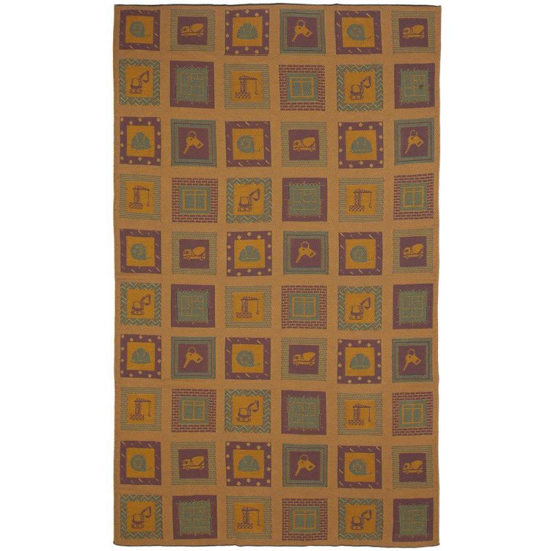 В каждой части общего рисунка, напоминающего лоскутное шитье, изображены главные символы строительной отрасли.