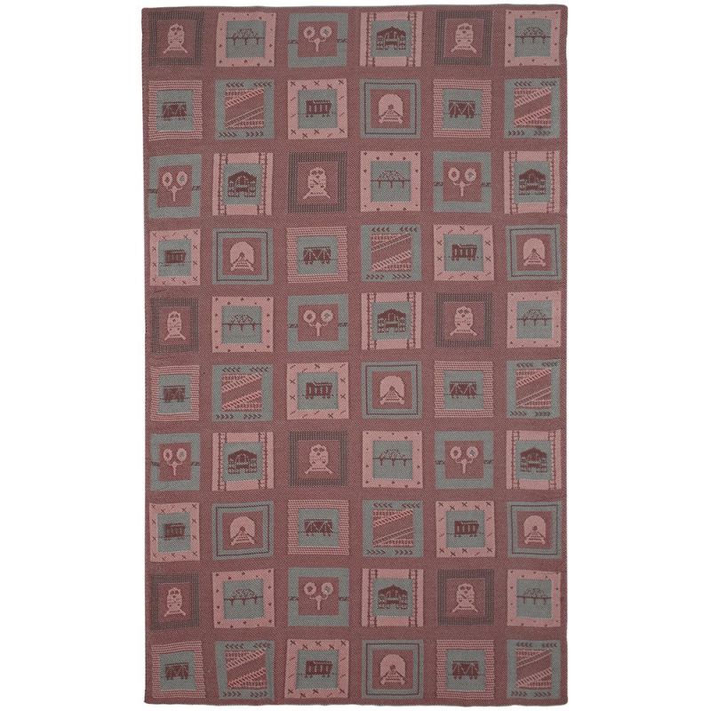 В каждой части общего рисунка, напоминающего лоскутное шитье, изображены главные символы железнодорожной отрасли.