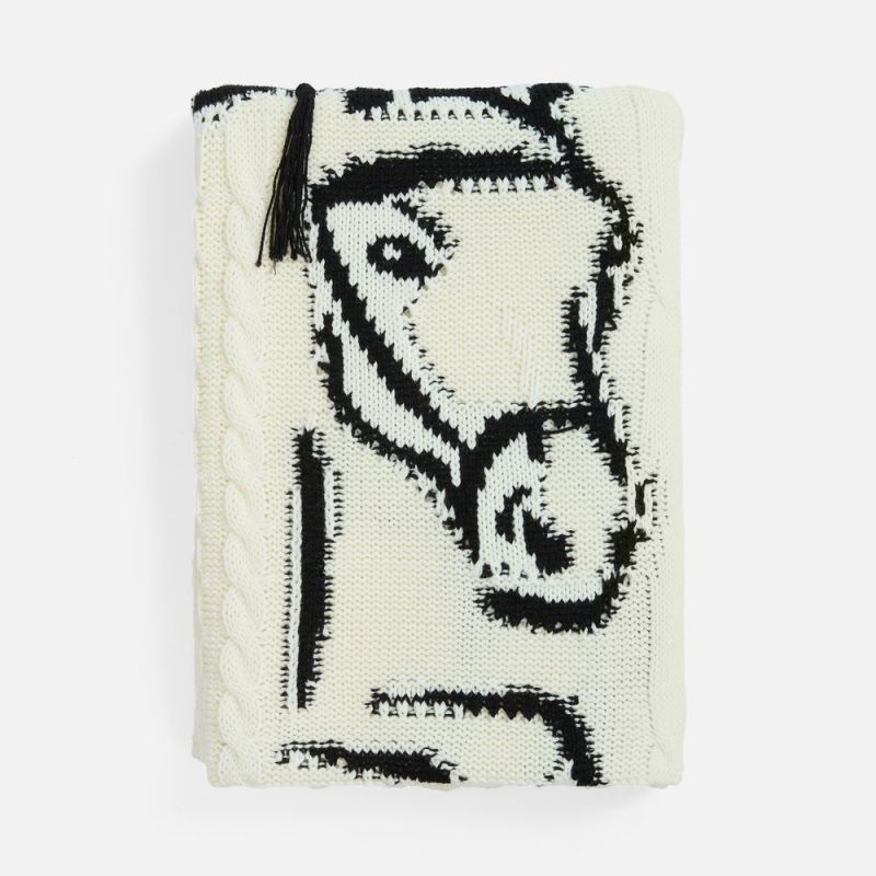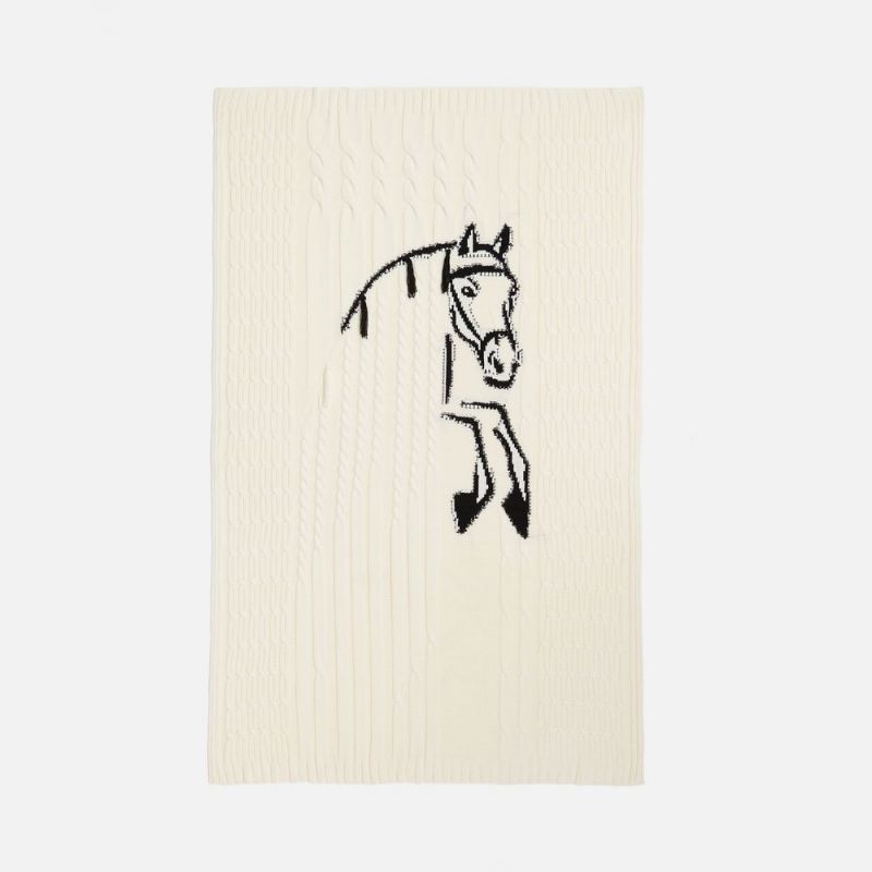 Лошадка на пледе будто встала на дыбы с согнутыми передними ногами, то есть в стойку курбет — бойкая и игривая. Дополнительного очарования и объема добавляют ей аккуратные кисточки на гриве. Словно незаконченный карандашный рисунок или эскиз, лошадь контрастно выделяется на общем белом фоне, символизируя полную готовность к грядущему году и его вызовам. А как еще встречать Новый год, если не с радостью и бурным желанием устремиться вперед?