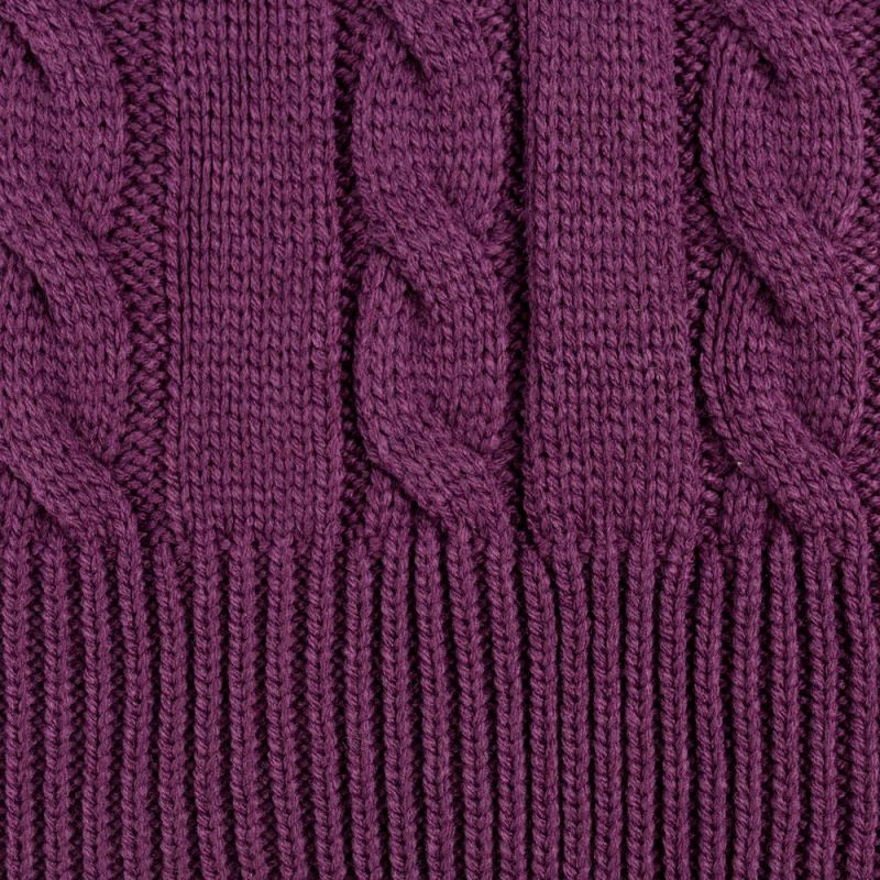 Модель: однотонный плед с фактурной вязкой, которая позволяет сделать его воздушным и объемным. Чередуя различные типы петель на гладком полотне, можно вывязать любую графику — логотип, текст, товарный знак.