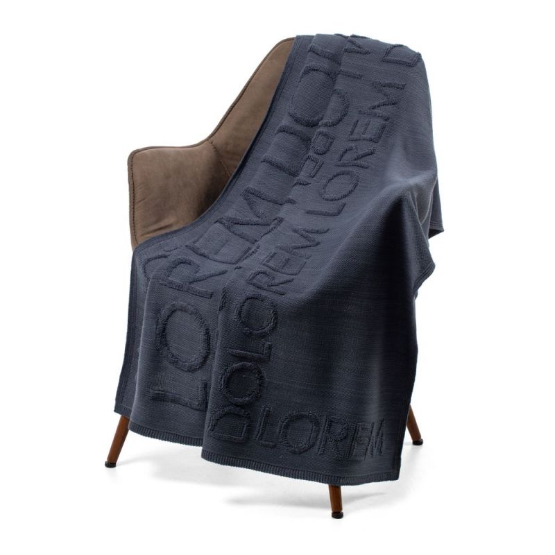 Модель: однотонный плед с фактурной вязкой, которая позволяет сделать его воздушным и объемным. Чередуя различные типы петель на гладком полотне, можно вывязать любую графику — логотип, текст, товарный знак.
