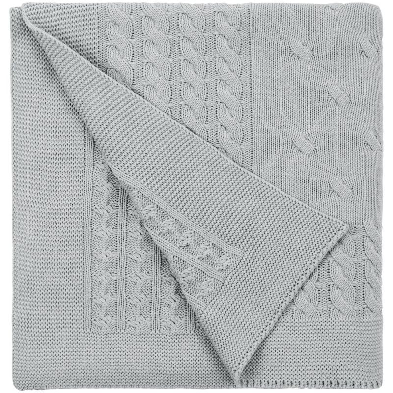 Модель: однотонный плед с фактурной вязкой, которая позволяет сделать его воздушным и объемным. Чередуя различные типы петель на гладком полотне, можно вывязать любую графику — логотип, текст, товарный знак.