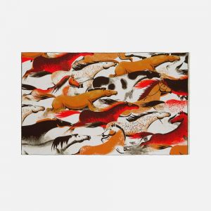 Плед «Огнегривые» масштабно воплощает символ 2026 года — Красную Огненную Лошадь. Табун лошадей, словно охваченных пламенем или заревом, в едином порыве смело несется вперед — навстречу новому, к общей манящей цели, мерно отбивая ритм и наслаждаясь свободой.