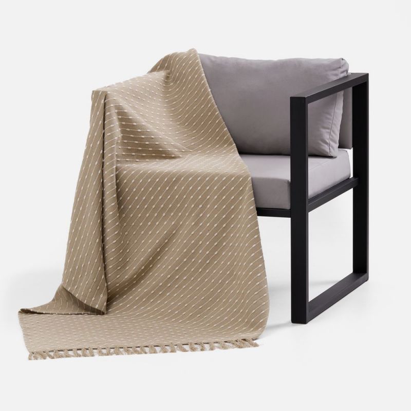 Фактурный узор с элементами счетной вышивки, а также спокойные природные оттенки пледа Shimla создадут приятное визуальное впечатление наряду с комфортными тактильными ощущениями благодаря натуральной основе пледа.