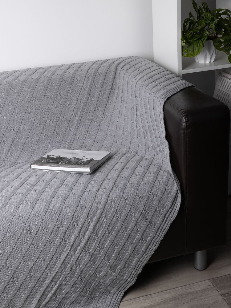 Вязаный плед фактурной вязки из меланжевой пряжи.