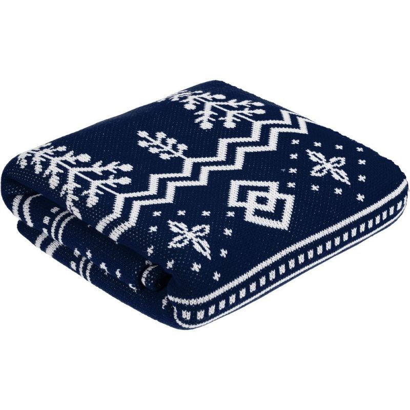 Плед с вывязанным логотипом и индивидуальным рисунком в фирменной цветовой гамме.