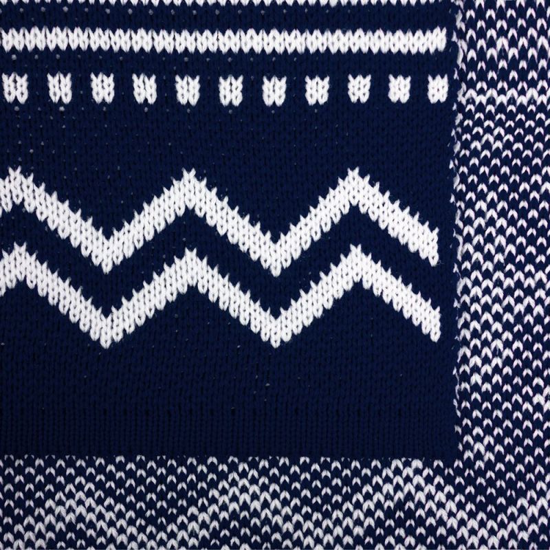 Модель: плед жаккардовой вязки, гладкая поверхность, крупная петля. Вязание в 2-3 цвета. Воспринимается как односторонний из-за ряби на изнанке.