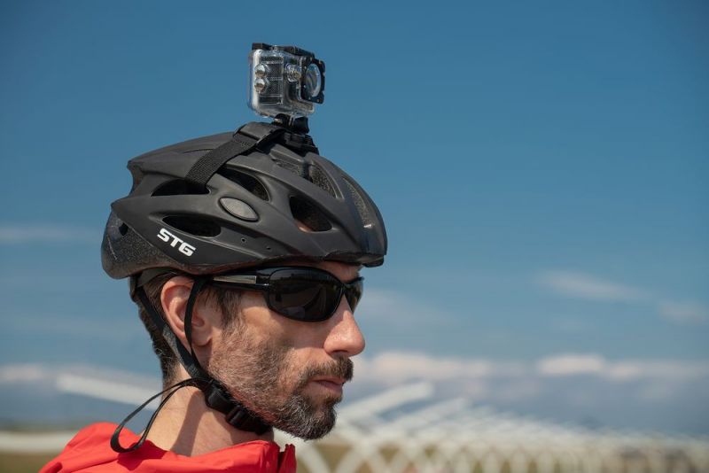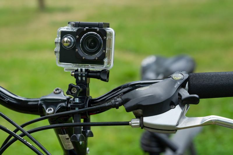 - Комплект аксессуаров: водонепроницаемый бокс для подводной съемки (до 30 метров), крепление на руль велосипеда, крепление на шлем, рамка, крепления с винтами, ремни (2 шт.), липучка (2 шт.).