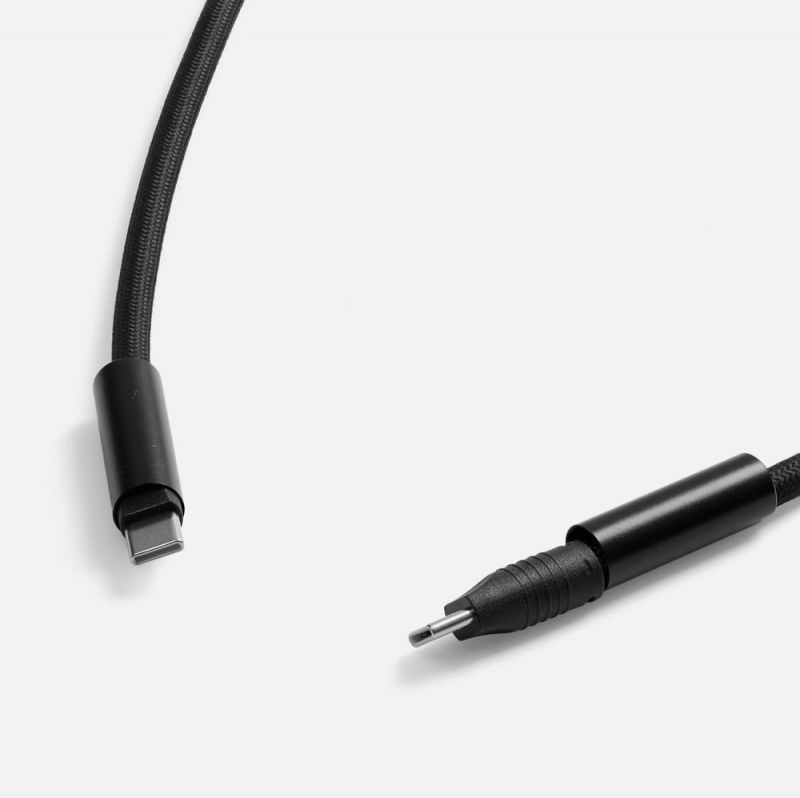 Кабель в прочной нейлоновой оплетке не заламывается и не путается, а металлическая фурнитура добавляет надежности и визуальной привлекательности.