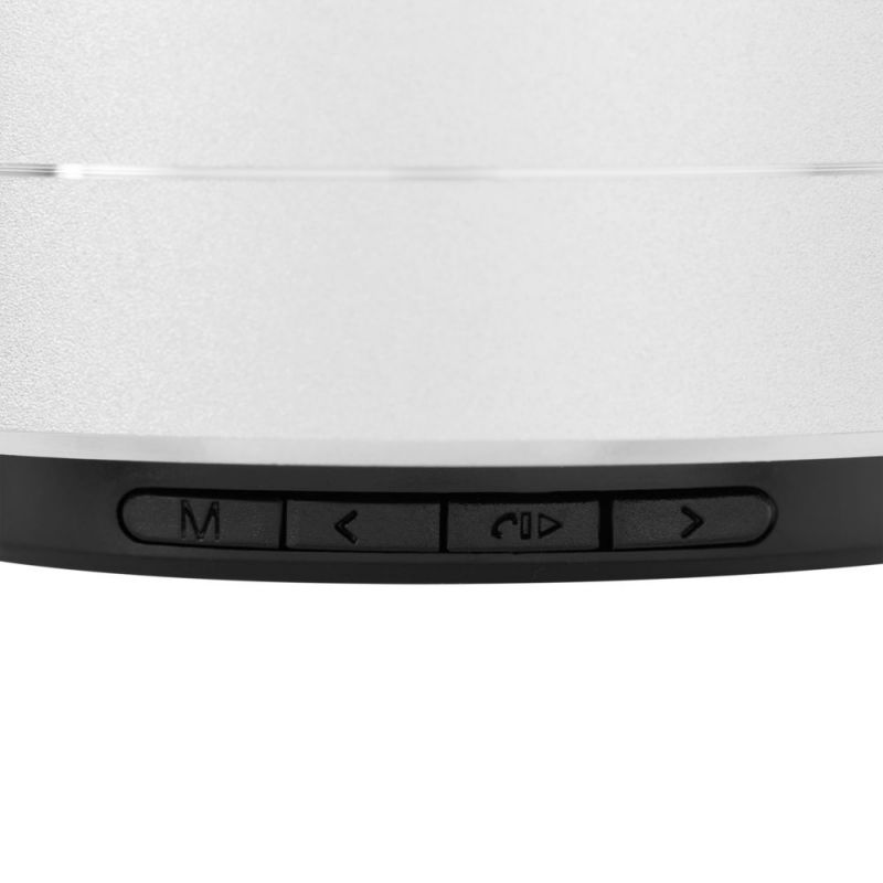 Колонка в металлическом корпусе выглядит стильно и солидно. Использовать ее можно даже на открытом воздухе — у нее достаточно мощный звук. Можно использовать для переговоров по громкой связи.