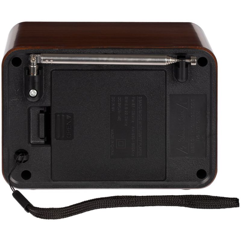 Корпус радиоприемника выполнен из качественного пластика с имитацией натурального дерева.