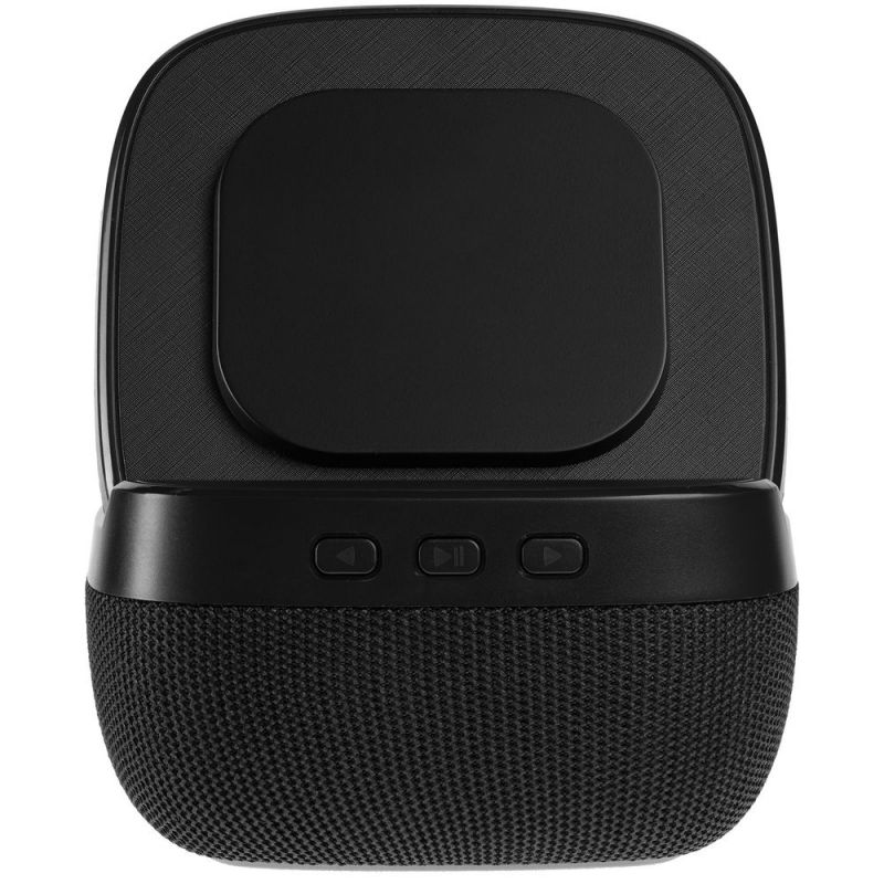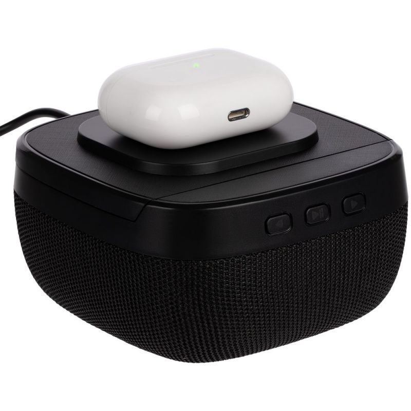 Колонка с беспроводной зарядкой Esca и подсветкой логотипа, черная