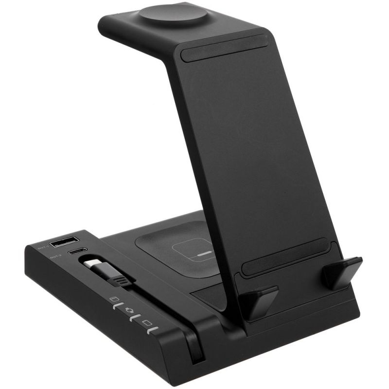 Зарядная станция Tres высшего уровня сложности позволяет заряжать до 5 гаджетов одновременно: телефон, часы Apple Watch 2–8, наушники с поддержкой протокола беспроводной зарядки Quick Charge и еще 2 устройства через кабели с разъемами USB-А и Type-C.