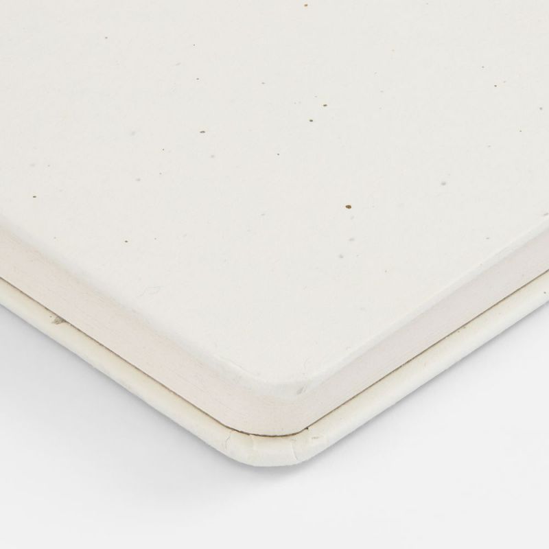Бумага и обложка произведены из переработанных пакетов из под молока. Обложка из картона плотностью 140 г/м² .