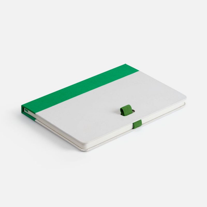 Бумага и обложка произведены из переработанных пакетов из под молока. Обложка из картона плотностью 140 г/м² .