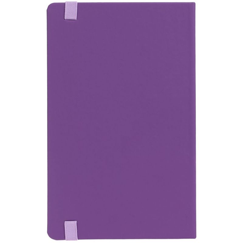 Блокнот в твердой обложке, выполнен из материала Soft Touch, фиолетовый UU, дополнен резинкой и ляссе в цвет обложки.