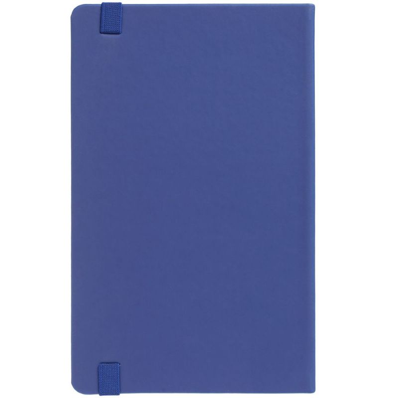 Блокнот в твердой обложке, выполнен из материала Soft Touch Pearl, синий НН, дополнен резинкой и ляссе в цвет обложки.