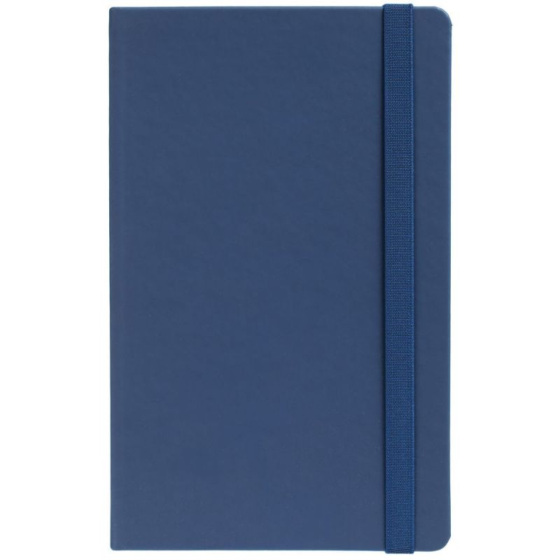 Блокнот в твердой обложке, выполнен из материала Soft Touch Pearl, синий НН, дополнен резинкой и ляссе в цвет обложки.