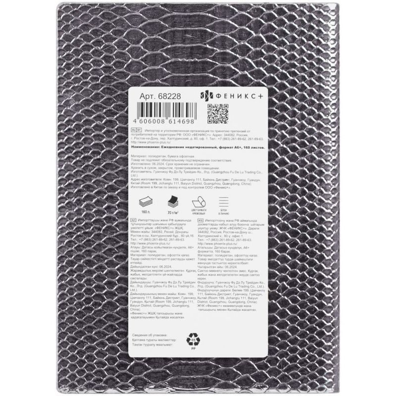 Ежедневник Anaconda, недатированный, серебристый