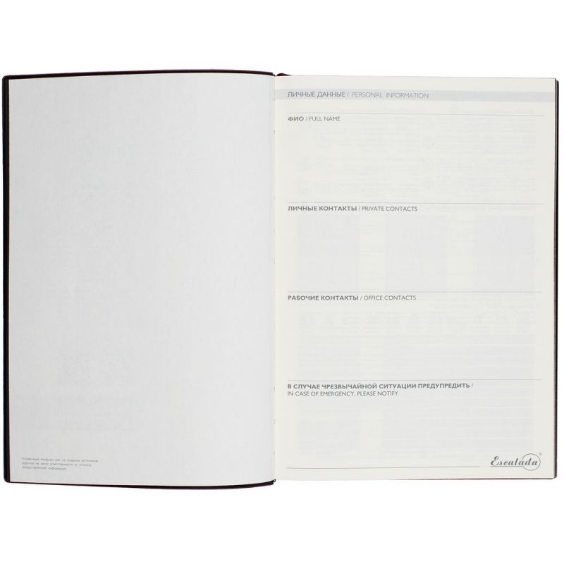 Ежедневник с гибкой обложкой и закладкой из искусственной кожи, дополнен капталом и двойным ляссе.