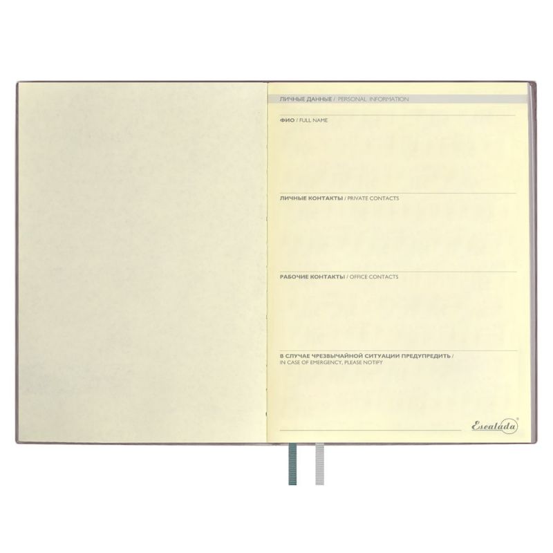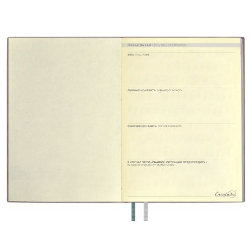 Ежедневник с гибкой обложкой и закладкой из искусственной кожи, дополнен капталом и двойным ляссе.