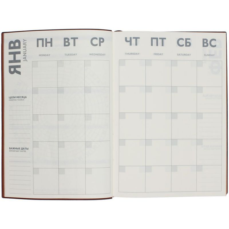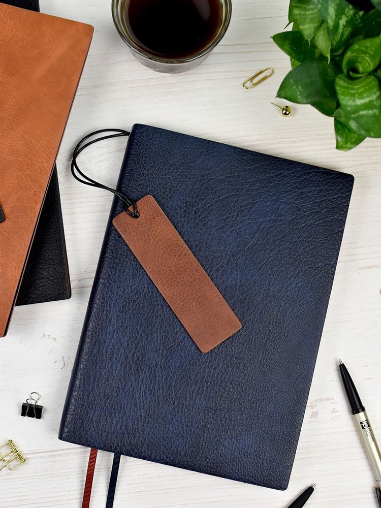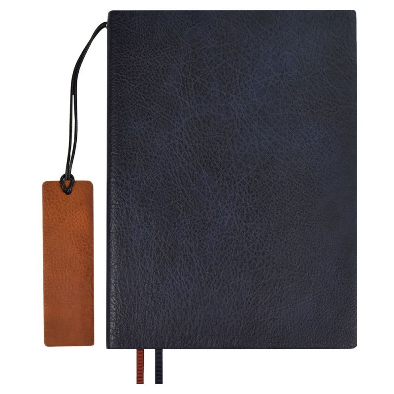 Ежедневник с гибкой обложкой и закладкой из искусственной кожи, дополнен капталом и двойным ляссе.