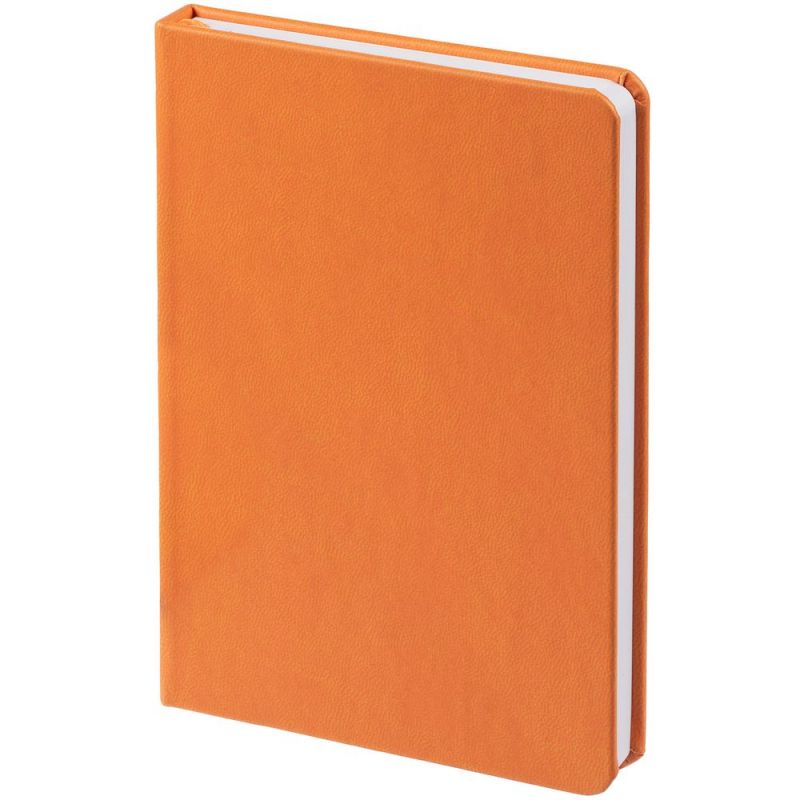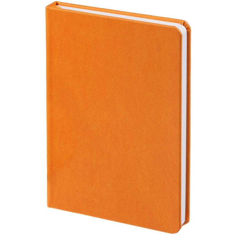 Ежедневник с твердой обложкой, выполнен из материала Latte, оранжевый ОО, дополнен ляссе в цвет обложки.