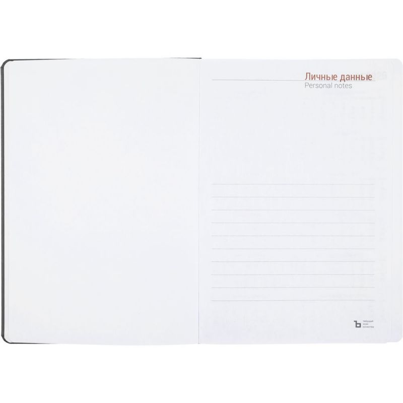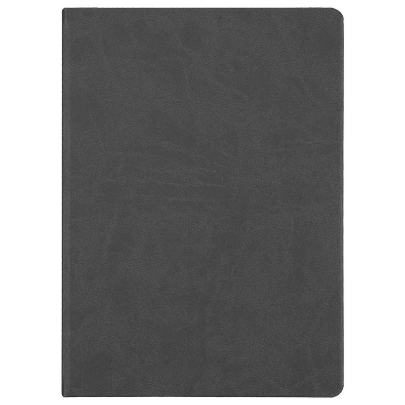 Ежедневник с твердой обложкой, выполнен из материала Latte, темно-серый ЕЕ, дополнен ляссе в цвет обложки.