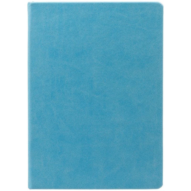 Ежедневник с твердой обложкой и тонированным обрезом. Выполнен из материала Latte, голубой, дополнен ляссе в цвет обложки.