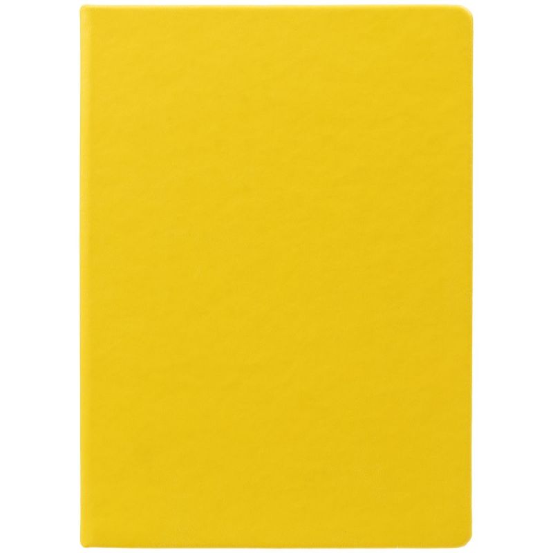Ежедневник с твердой обложкой и тонированным обрезом. Выполнен из материала Latte, желтый, дополнен ляссе в цвет обложки.