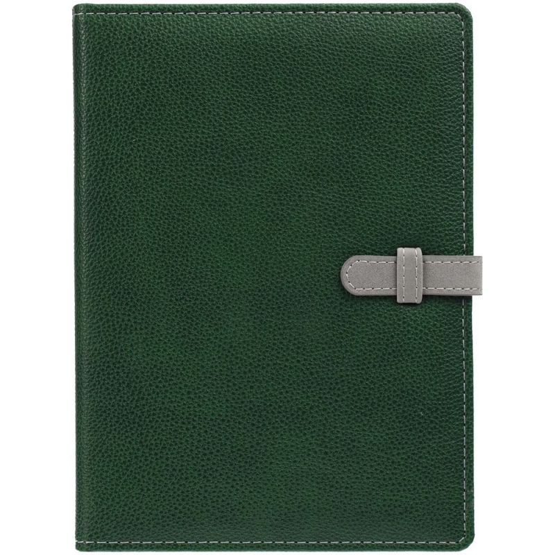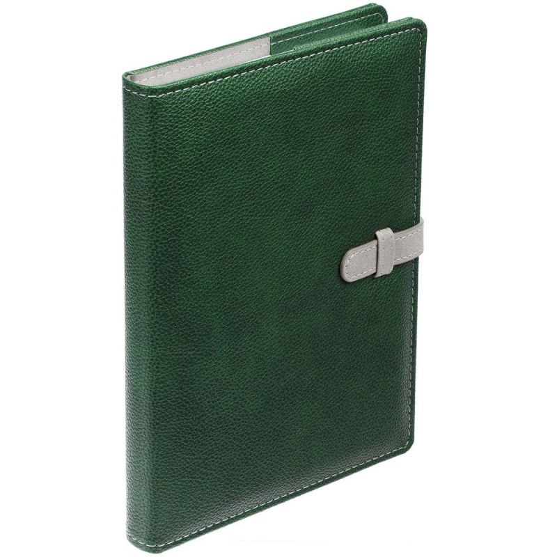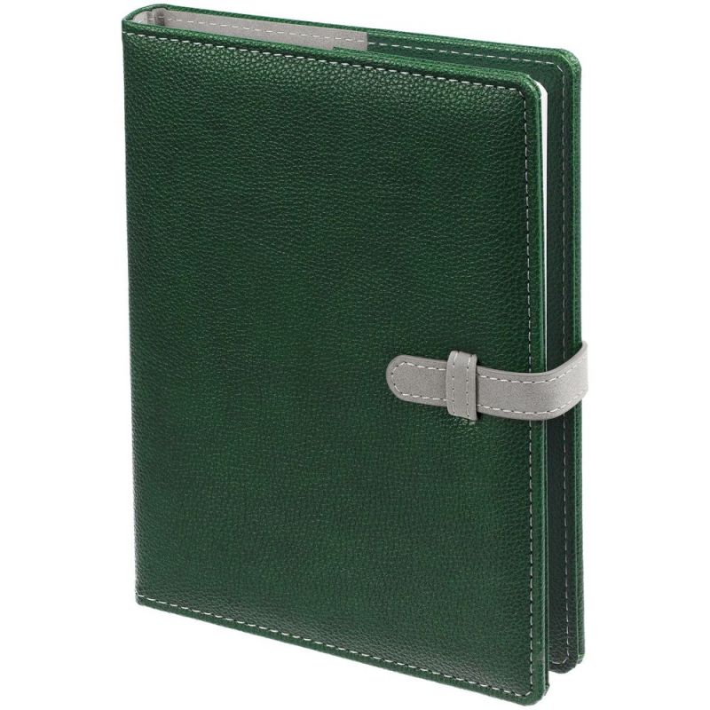 Ежедневник в мягкой суперобложке, выполнен из материала La Fite, зеленый FF, дополнен ляссе серого цвета.