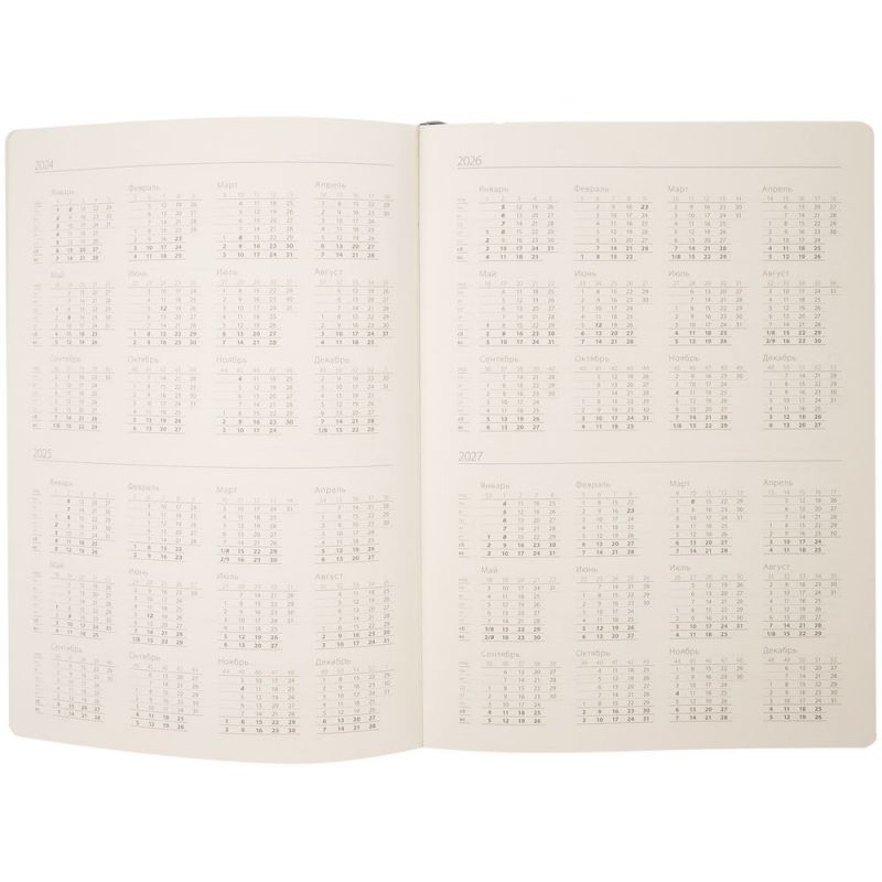 Гибкая обложка ежедневника выполнена из материала Soft Touch Pearl, черный АА и цветного Latte (внутренняя часть обложки).
