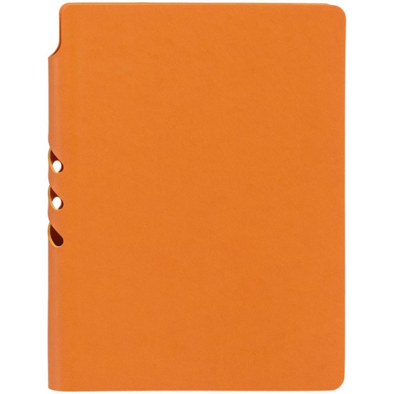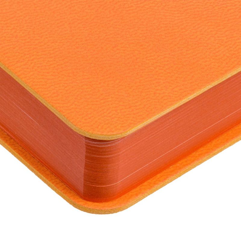 Ежедневник с гибкой обложкой, выполнен из материала Latte, оранжевый ОО. Внутри корешка — специальное место для крепления ручки размером до 15х0,9 см.