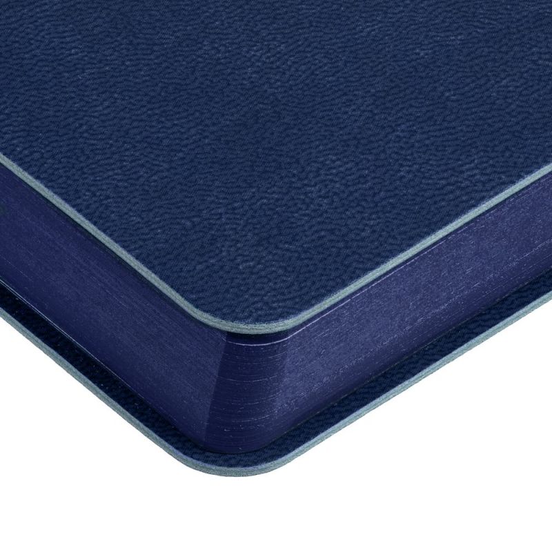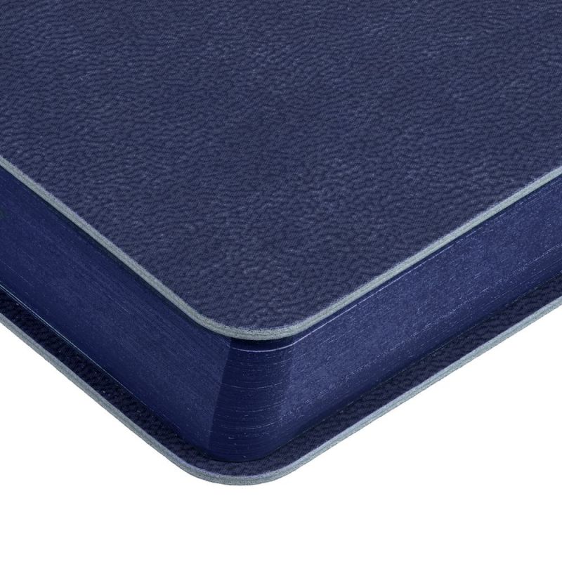Гибкая обложка ежедневника выполнена из материала Latte, темно-синий XX. Внутри корешка — специальное место для крепления ручки размером до 15х0,9 см.
