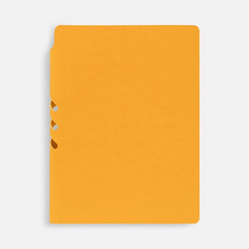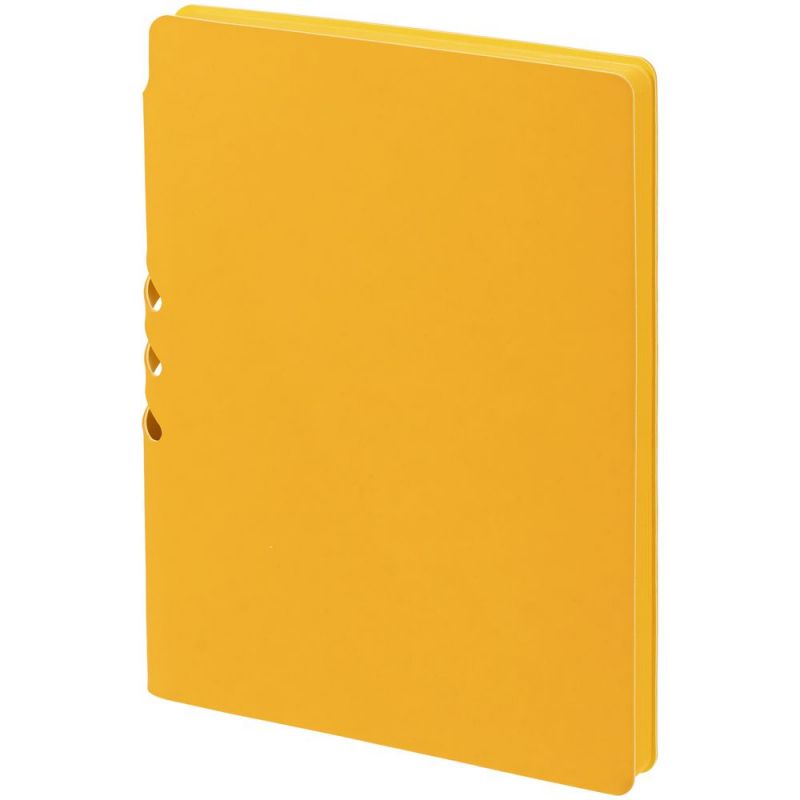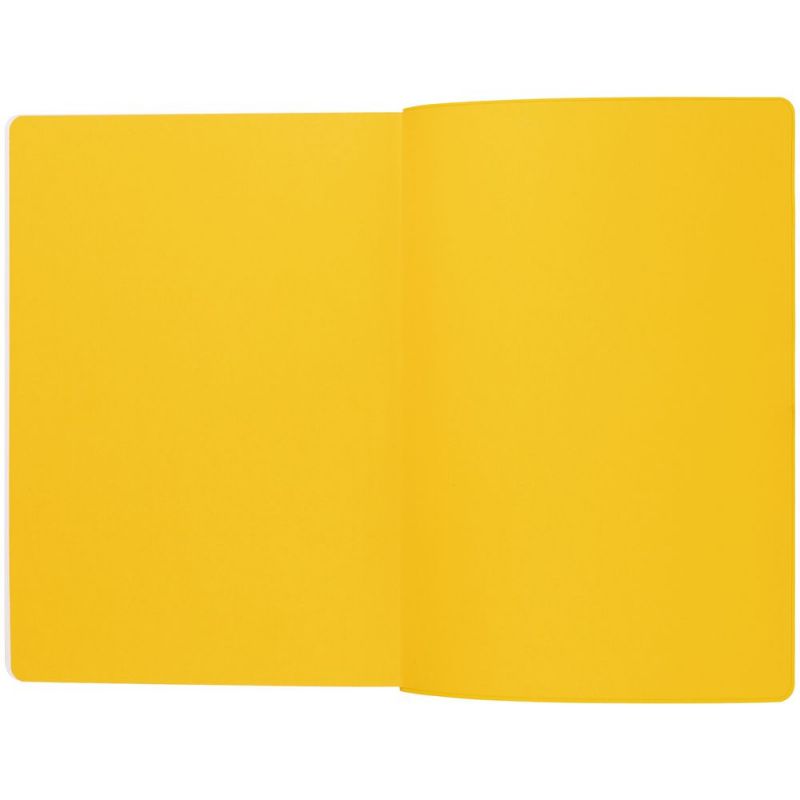 Гибкая обложка выполнена из материала Soft Touch, желтый КК и Latte, желтый КК (внутренняя часть обложки). Внутри корешка — специальное место для крепления ручки размером до 15х1 см.