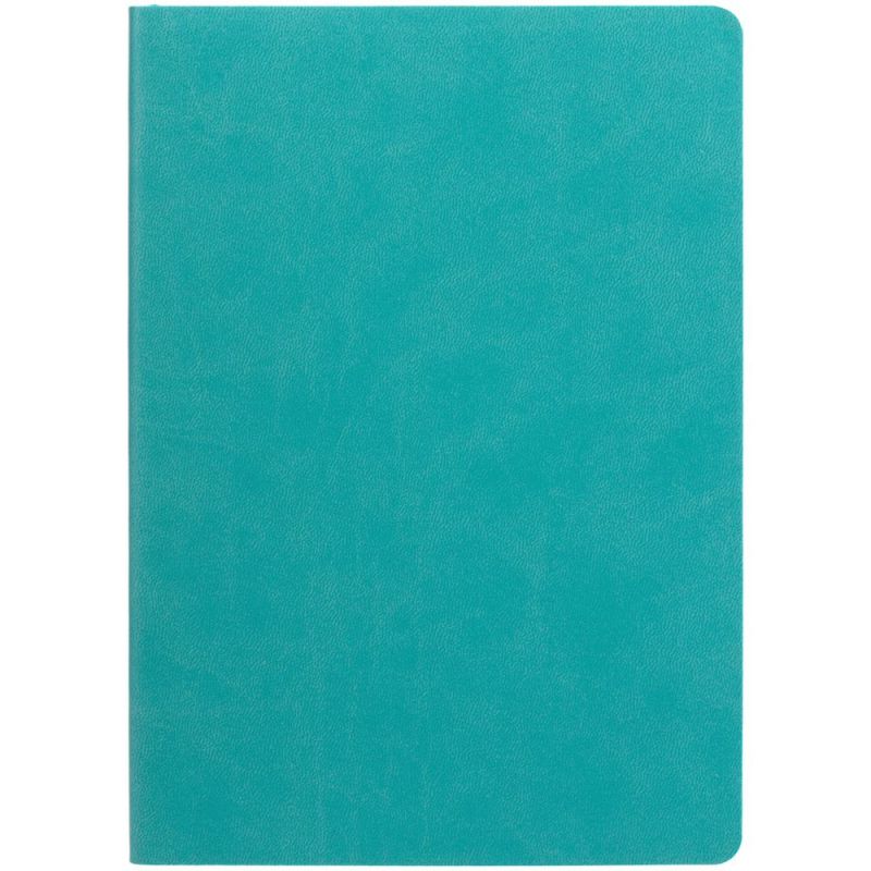 Ежедневник с гибкой обложкой, выполнен из материала Latte, бирюзовый, дополнен ляссе в цвет обложки.