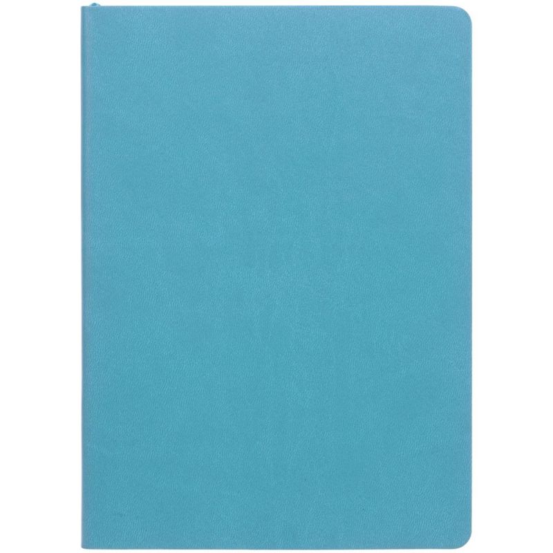 Ежедневник с гибкой обложкой, выполнен из материала Latte, голубой, дополнен ляссе в цвет обложки.
