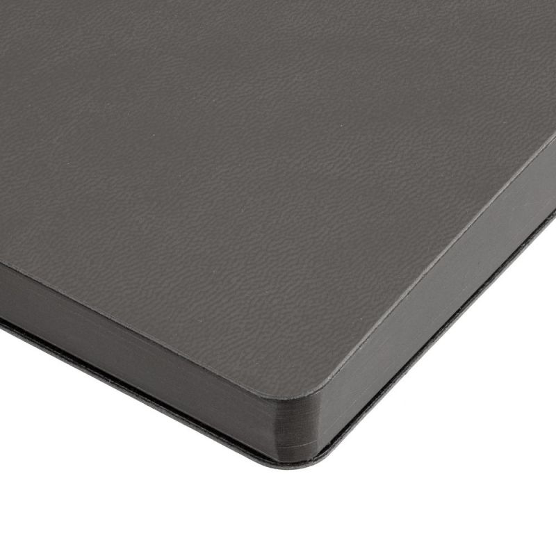 Ежедневник с гибкой обложкой, выполнен из материала Latte, серый, дополнен ляссе в цвет обложки.