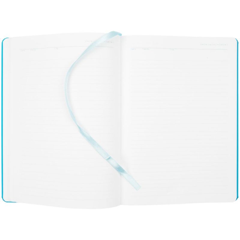 Обложка ежедневника из материала Soft Touch. На корешке обложки выполнено блинтовое тиснение, обложка дополнена вырубкой с печатью на бумаге и полимерными наклейками под смолой.
