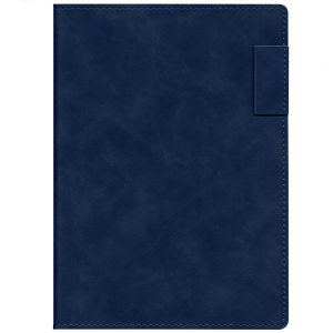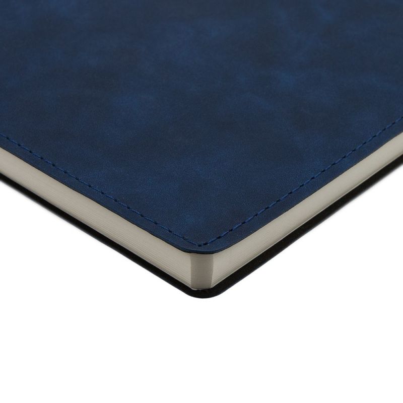 Ежедневник 17х24 см, с гибкой обложкой, выполнен из материала Nubuck Touch, темно-синий ХХ, дополнен петлей-лейблом для ручки и двойным ляссе в цвет материала.