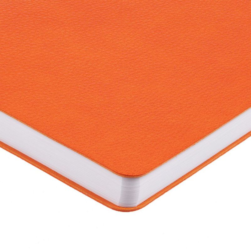 Ежедневник с гибкой обложкой, выполнен из материал La Fite, оранжевый ОО, дополнен ляссе в цвет обложки с металлическим шильдом.